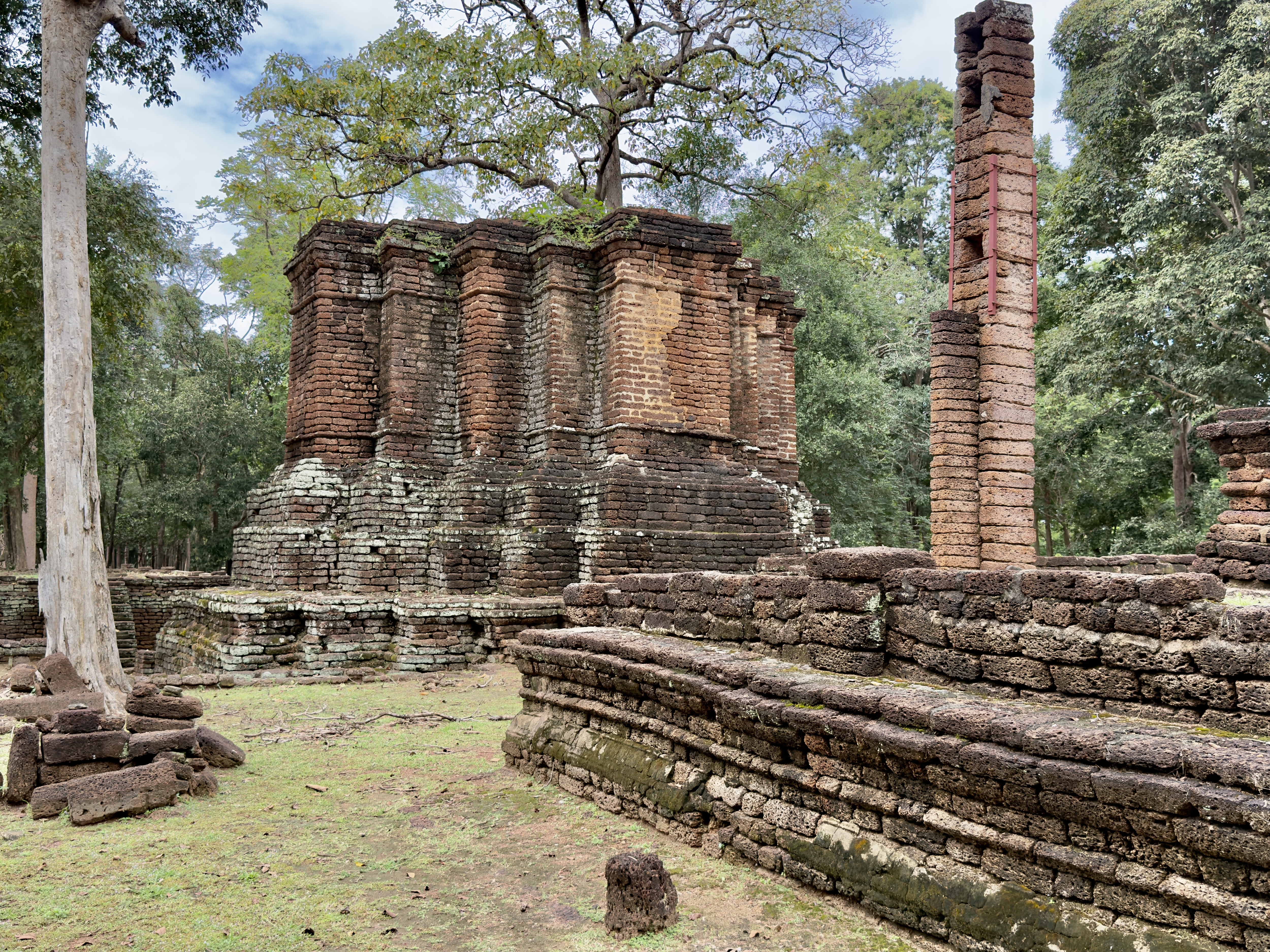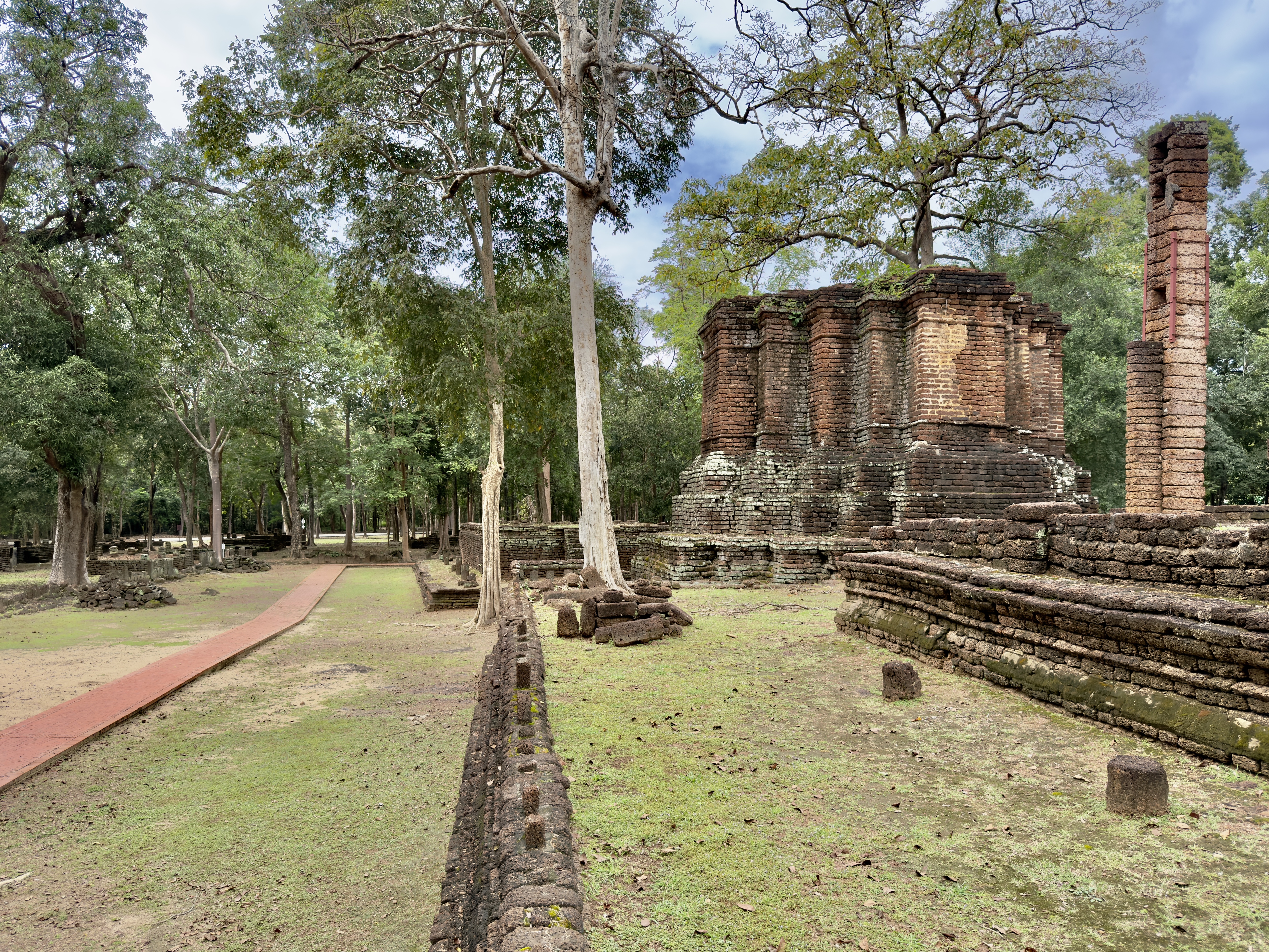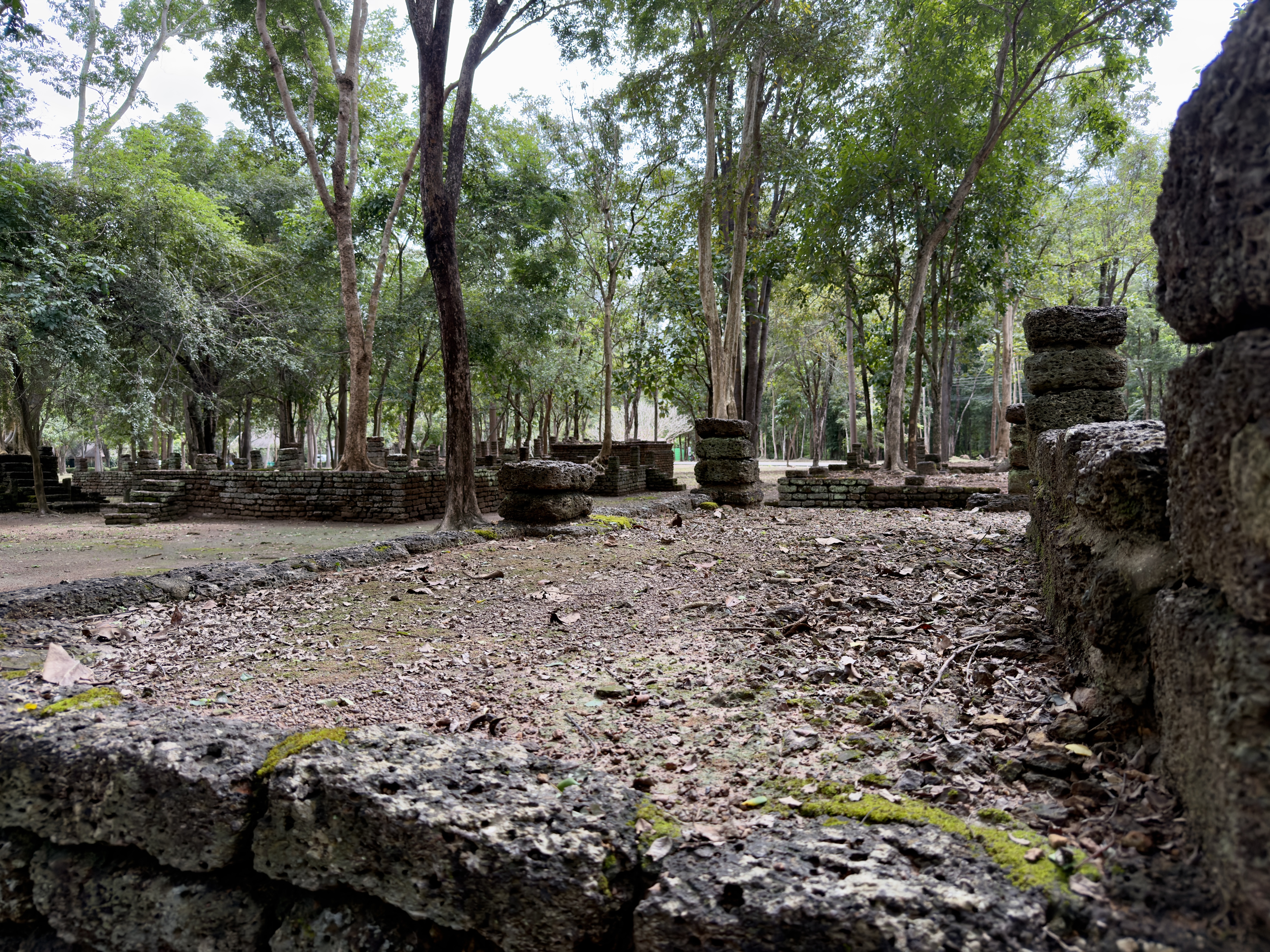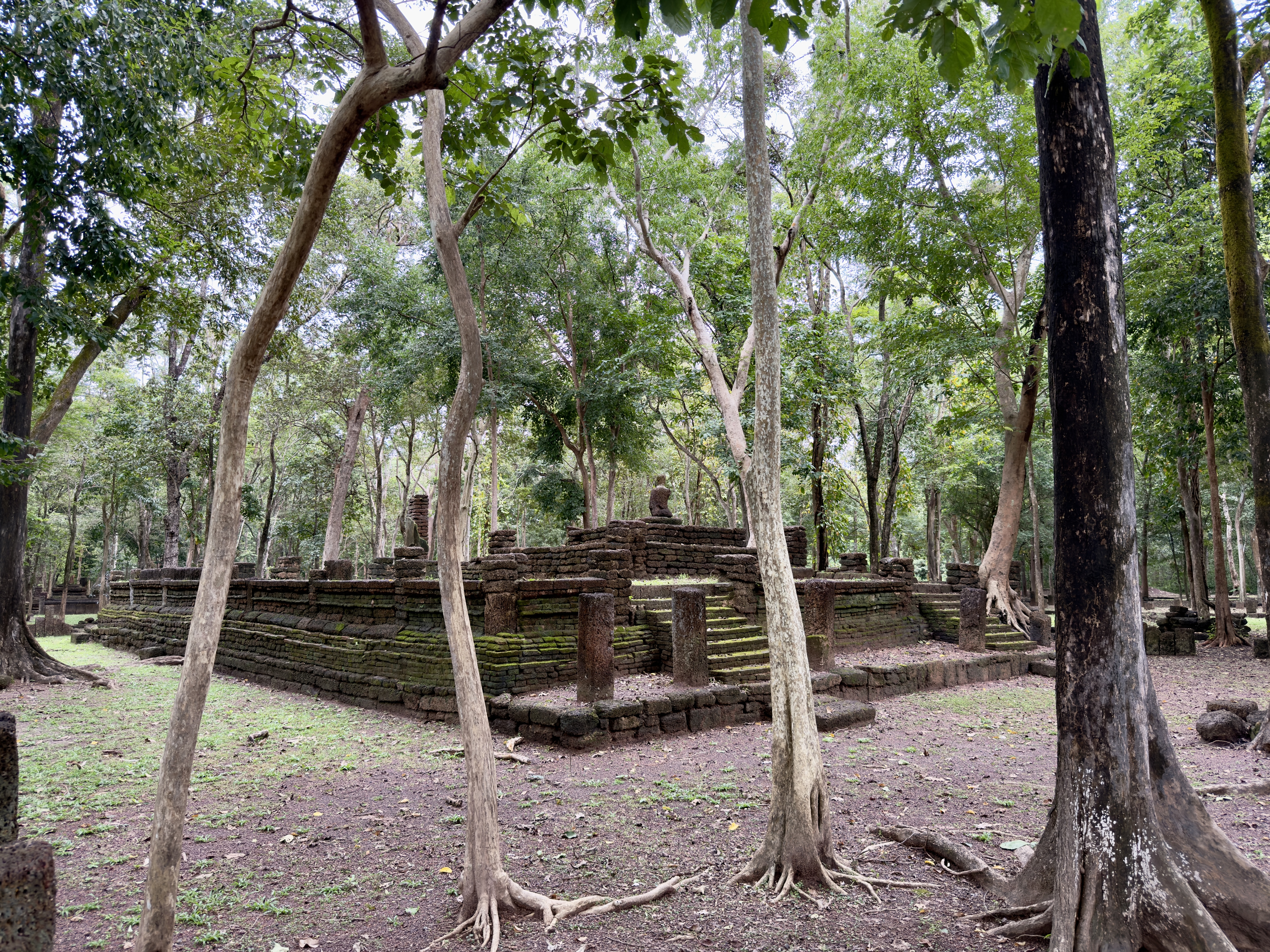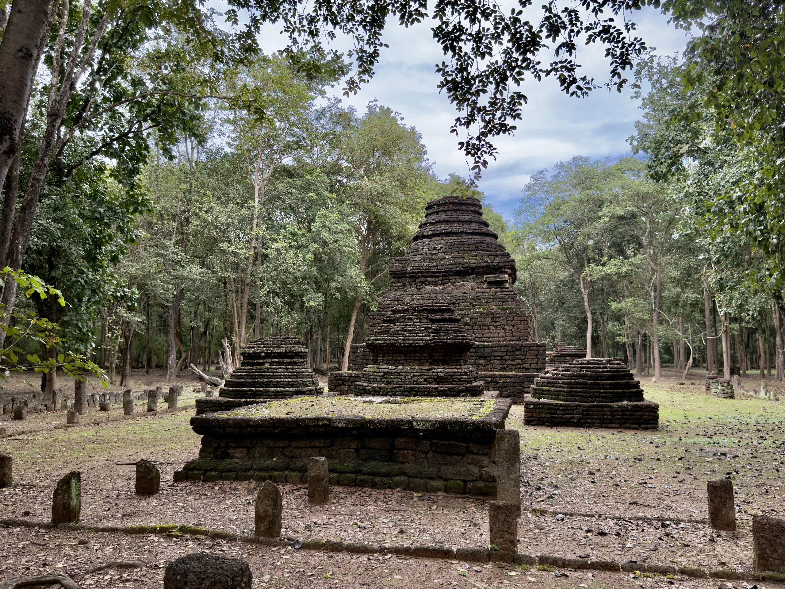 We rolled into Kamphaeng Phet in the afternoon — early enough to do something touristy. The city’s Historical Park is a proper hidden gem — a UNESCO site full of ancient temples, half-crumbled chedis, and giant Buddha statues watching you melt in the heat.